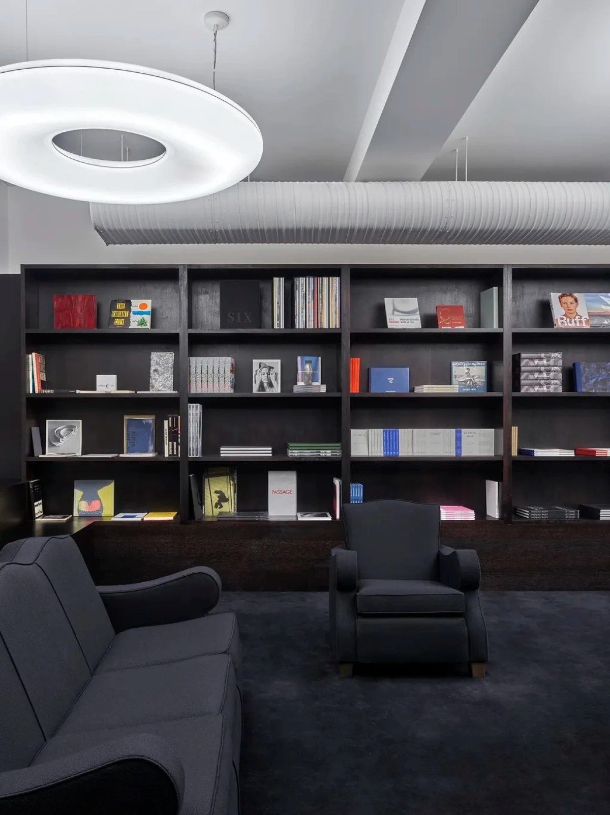 Alaïa knjižara je intiman prostor koji nalikuje kućnoj biblioteci. Od rijetkih i potpisanih knjiga o modi, fotografiji i umjetnosti do djela legendi kao što su Louise Bourgeois i nobelovke Annie Ernaux, kolekcija je osmišljena kako bi inspirirala i potaknula na razmišljanje. Tamni tepisi i udobni naslonjači stvaraju ugodnu atmosferu koja poziva posjetitelje da potpuno uđu u svijet umjetnosti.