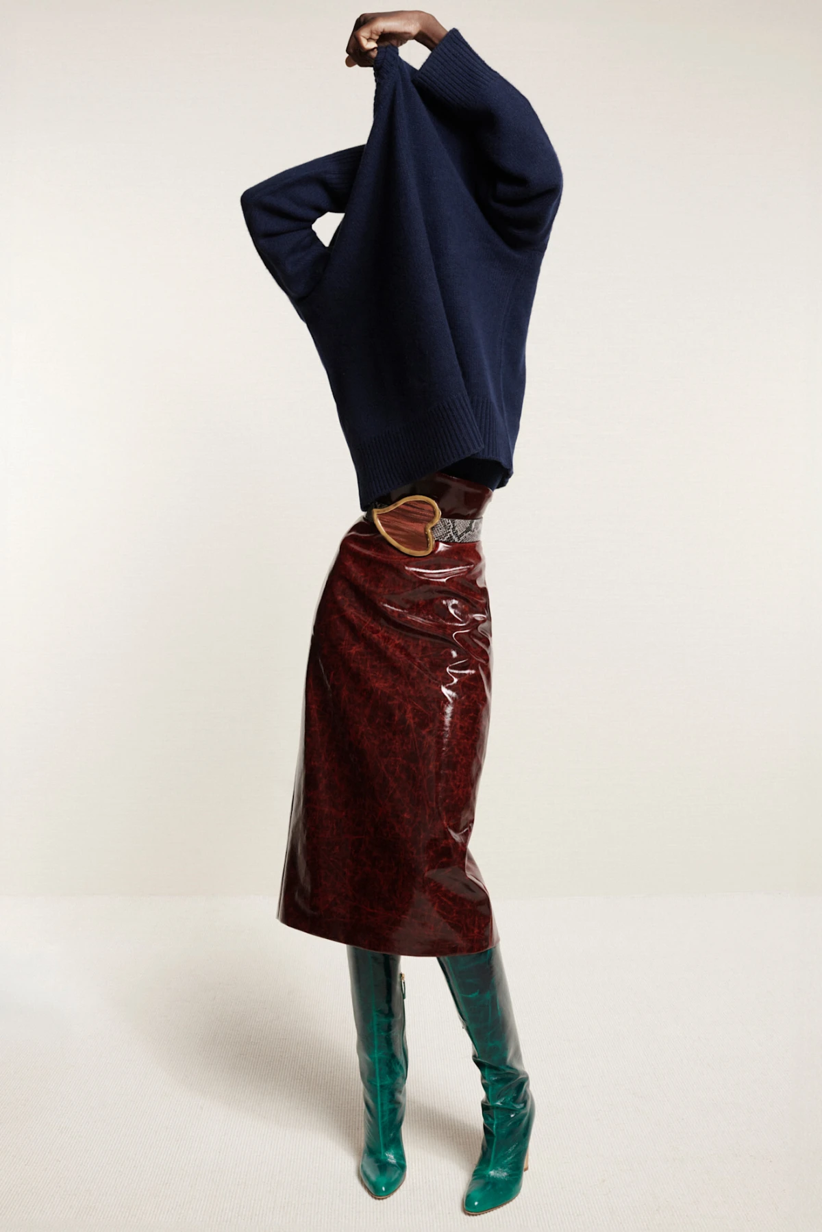 Jedan od vodećih komada za jesen 2024. godine je midi kožna suknja, koja svojom elegancijom i svestranošću može biti temelj mnogih različitih stilskih kombinacija. Ovaj bezvremenski komad viđamo posvuda, a brojni brendovi poput Botega Venette, Prade i Guccija, uvrstili su dobre kožne suknje u svoje posljednje kolekcije jer se s pomoću iste postiže savršeni balans između sofisticiranog i trendi izgleda.