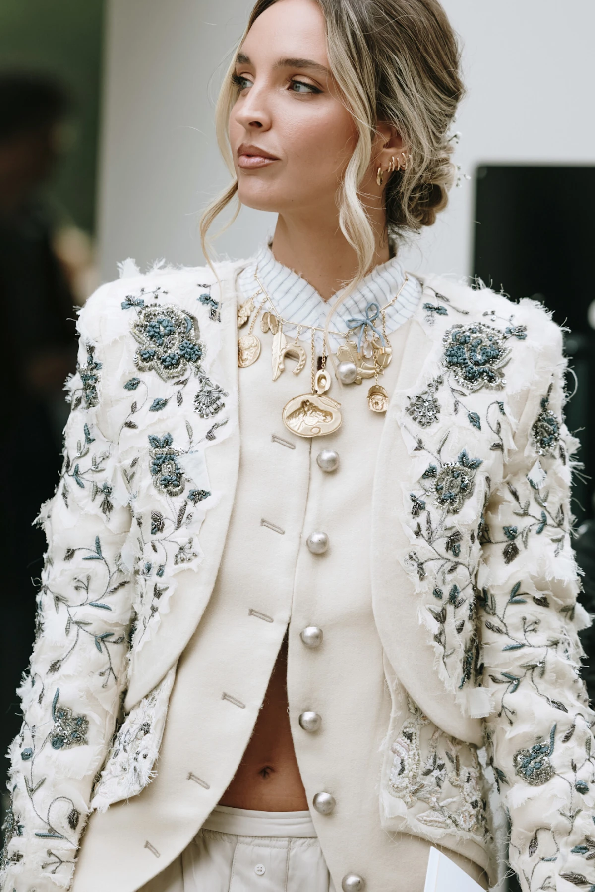 Iako originalna Chanel verzija zauvijek ostaje standard, postoji nekoliko dobrih, a dostupnijih opcija koje zrače istom elegancijom. Ključno je da obradite pozornost na materijal. Najbolje jakne imaju savršenu ravnotežu između strukture i mekoće. Birajte srednje teški tvid, bouclé ili gustu vunenu mješavinu, nešto dovoljno čvrsto da zadrži oblik, ali nikada ukočeno. Također, V-izrez narušava klasične proporcije jakne stoga odaberite jednostavan okrugli izrez bez ili sa ovratnikom. Promišljeni elementi poput upečatljivih gumba i džepovi su također važni.