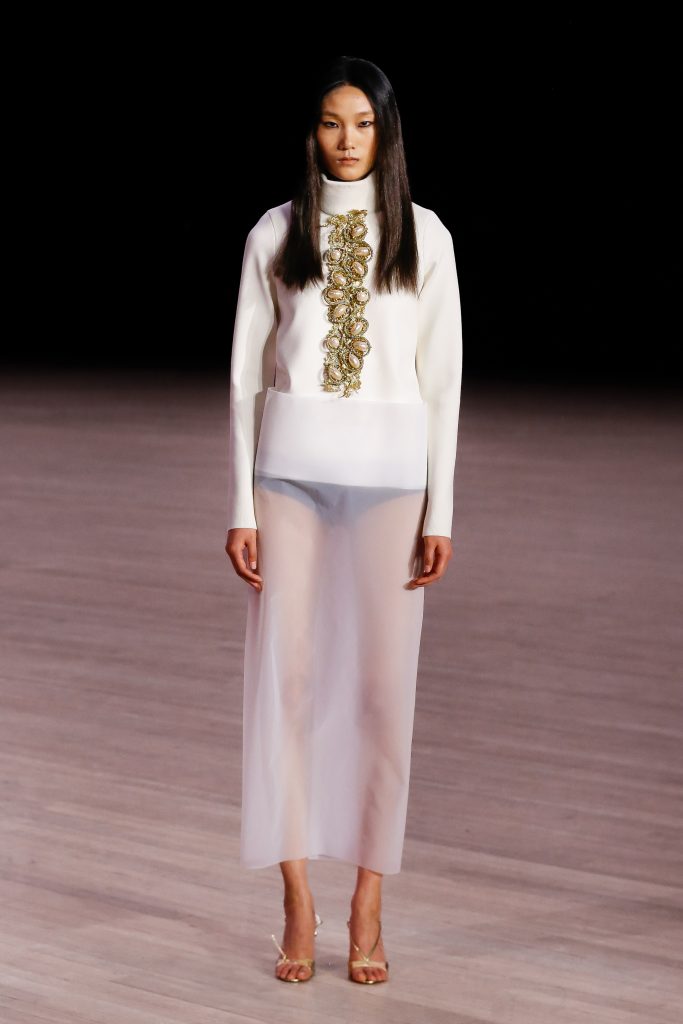 Time što je Jacobs naveo točne kolekcije i modna sjećanja koja kontinuirano obogaćuju njegov rad, povukao je potez na koji se mnogi ne usude, a upravo to njegov rad čini još snažnijim. A u tom stilu smo vidjeli odlične komade koji, kao i Saint Laurent šezdesetih, oblikuju postmodernu viziju neoplasticizma kroz kombinaciju rigidne geometrije i lepršavih trenutaka. Kao i strateški izvezi, spušteni ili pretjerano visoko pozicionirani struk (trend alert) i izokrenuti ili naglašeni ovratnici, te V izrezi a la Prada devedesetih (trend alert 2).