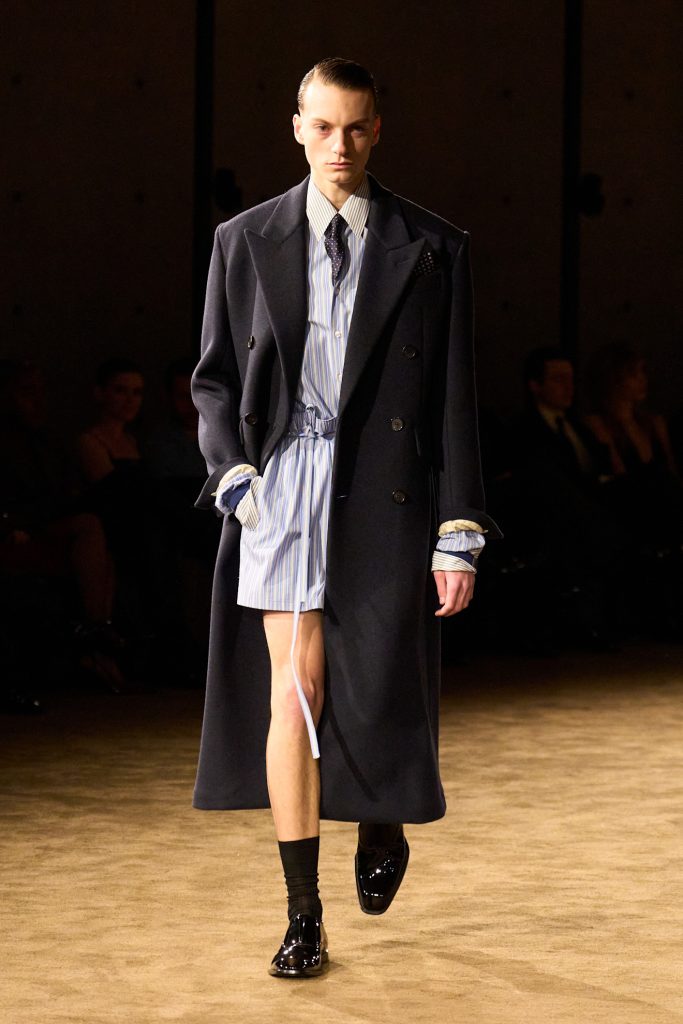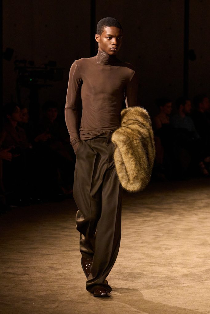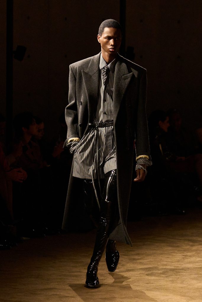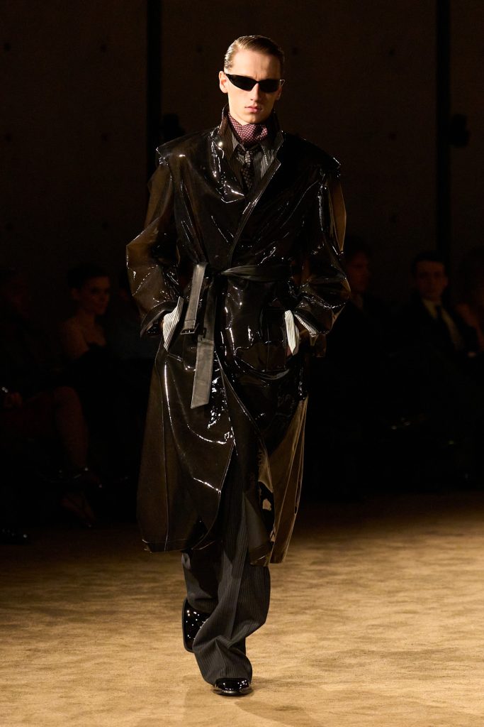 Saint Laurent muškarac, koliko god elegantan i ‘’hladan’’ bio, je i dalje ljudsko biće. Neočekivana ljudskost i njeni tragovi na komadima poput raskokanih rukava a la Prada, chic i nespretno vezanih marama i akrobacija s kravatama koje je Vaccarello počeo istraživati u prijašnjim kolekcijama ukazuju na činjenicu da odjeća mora biti nošena ili korištena kako bi oživjela. Nešto što je apsolutno logično, ali nerijetko i zanemareno u današnjem promatranju odjeće kroz platforme, kritike i zaslone koji sve čine puno plošnijim nego što je zapravo.