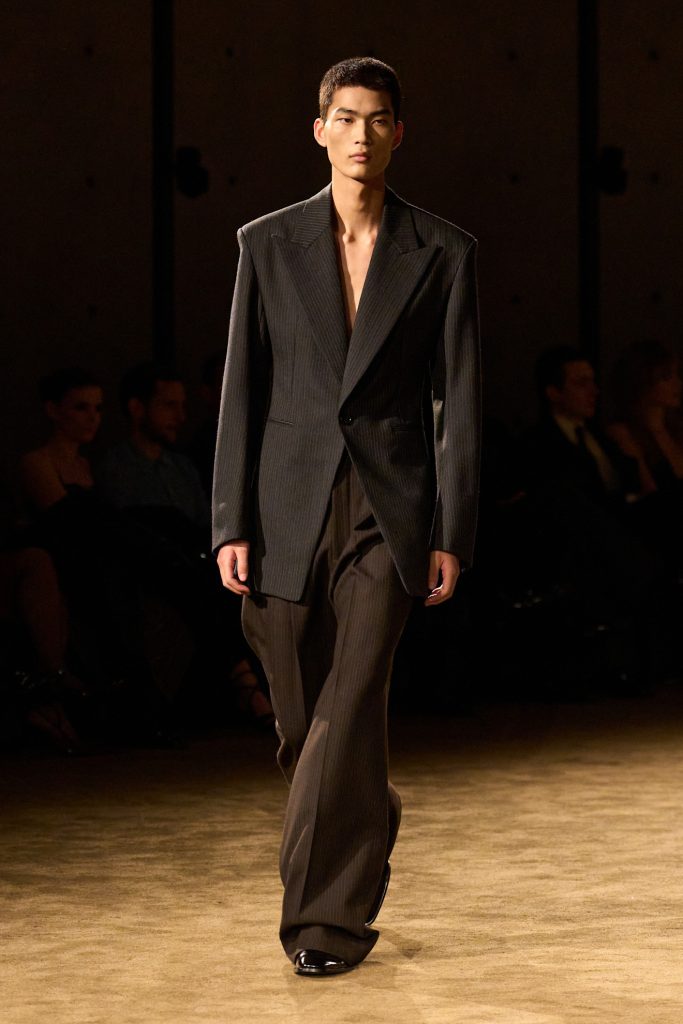 No, Vaccarello ovom kolekcijom Saint Laurent muškarca izvodi na svjetlost dana, na prve jutarnje zrake sunca – nespremnog, ranjivog, ali ekstremno elegantnog. Snažno inspiriran kultnom knjigom Giovanni’s Room Jamesa Baldwina, očigledno njenim erotskim dijelovima i onima koji kasnije razgolićuju takozvani američki san do kostiju, Vaccarello novu Saint Laurent viziju vidi negdje na pola puta između prisilnog i odabranog bijega.
