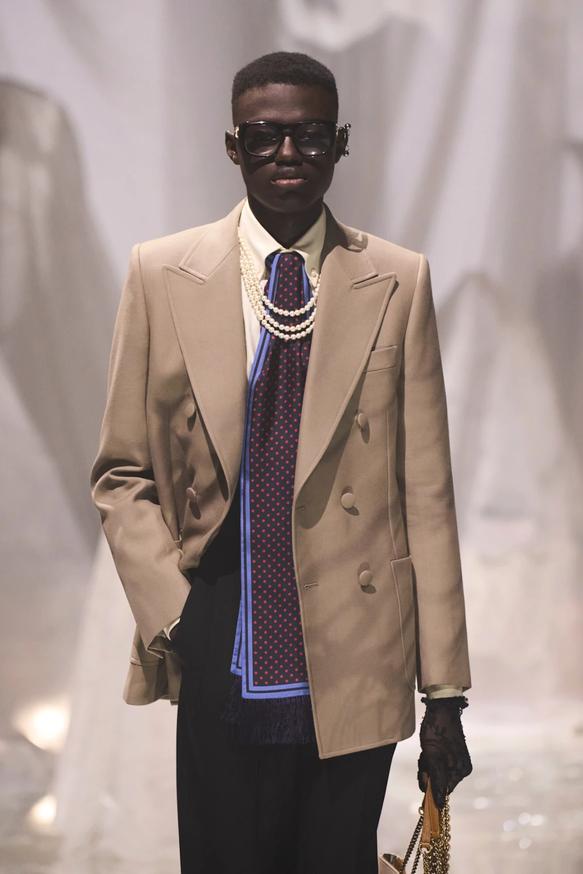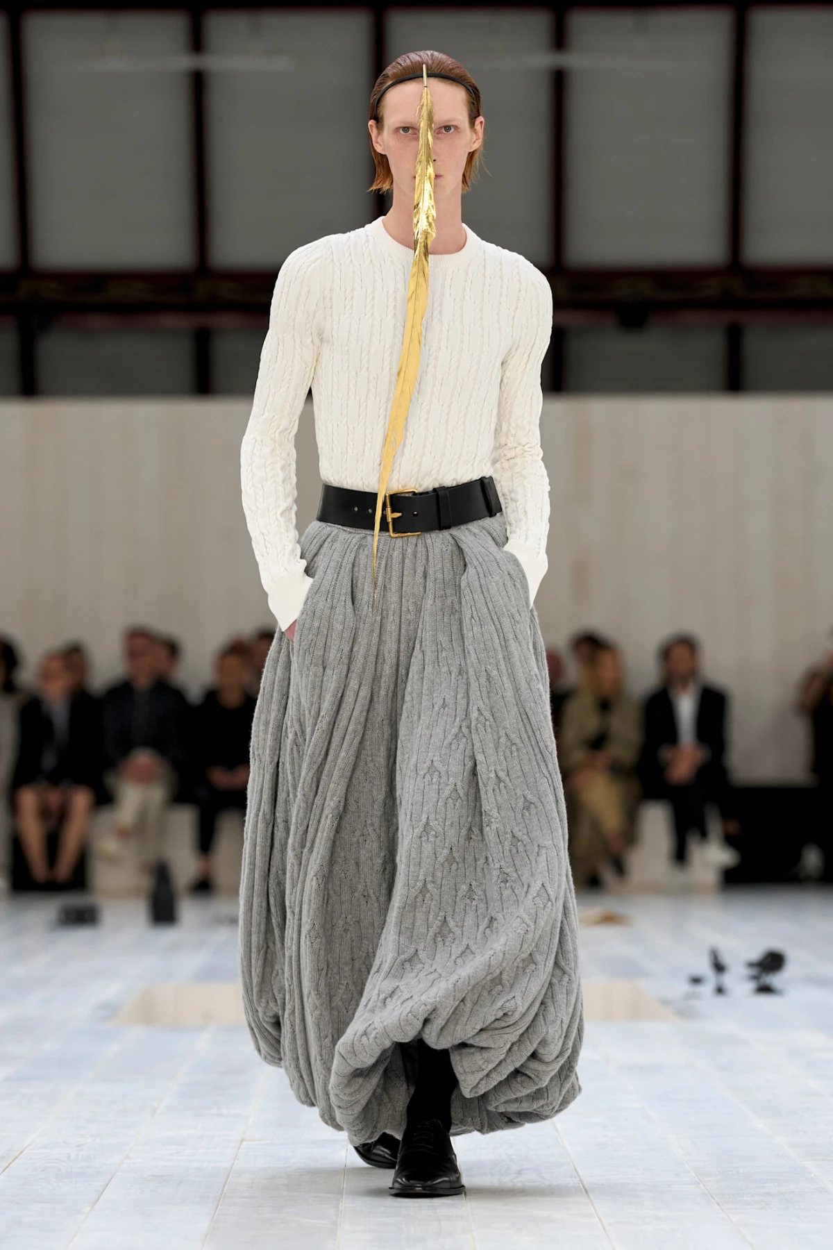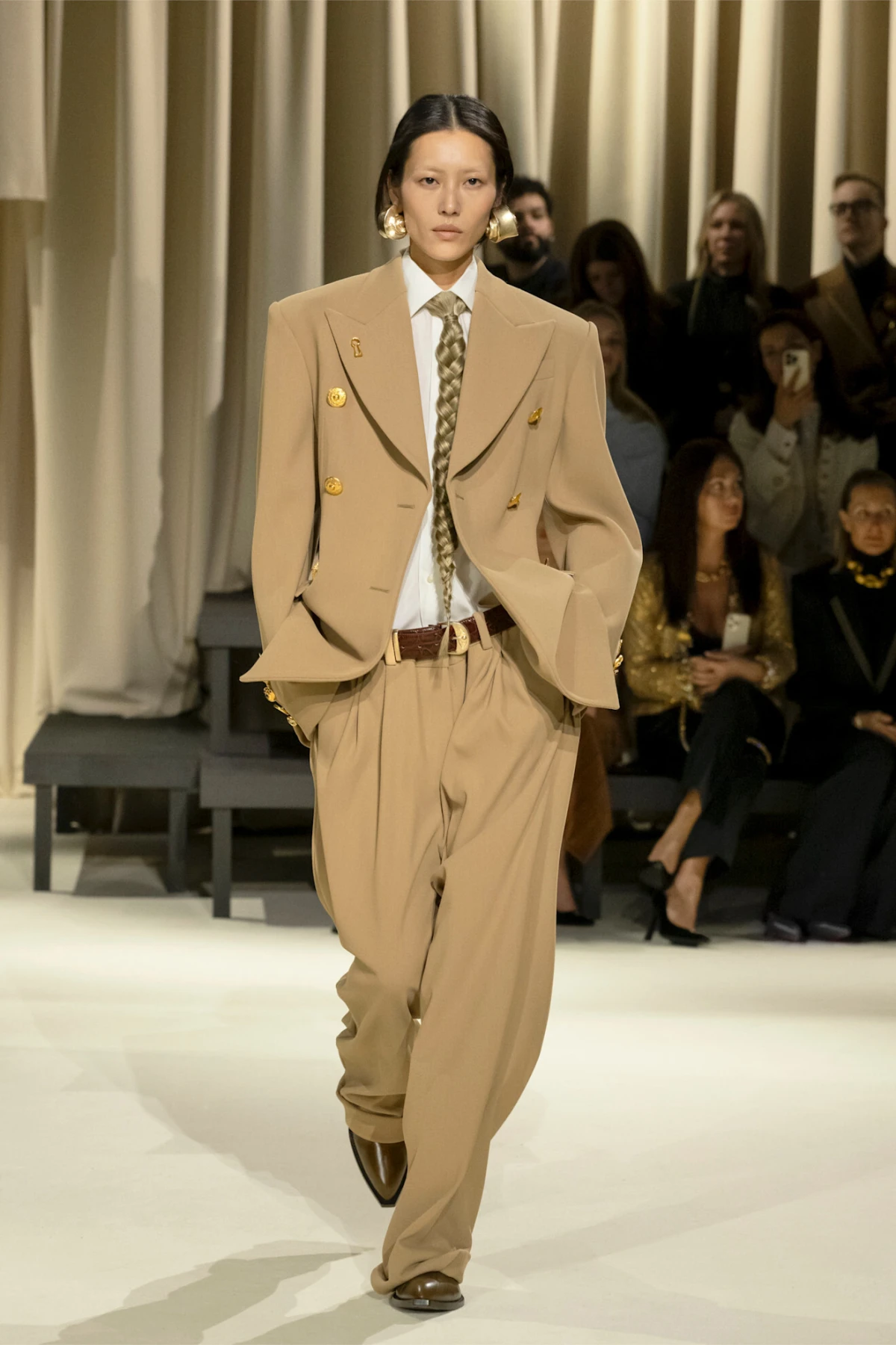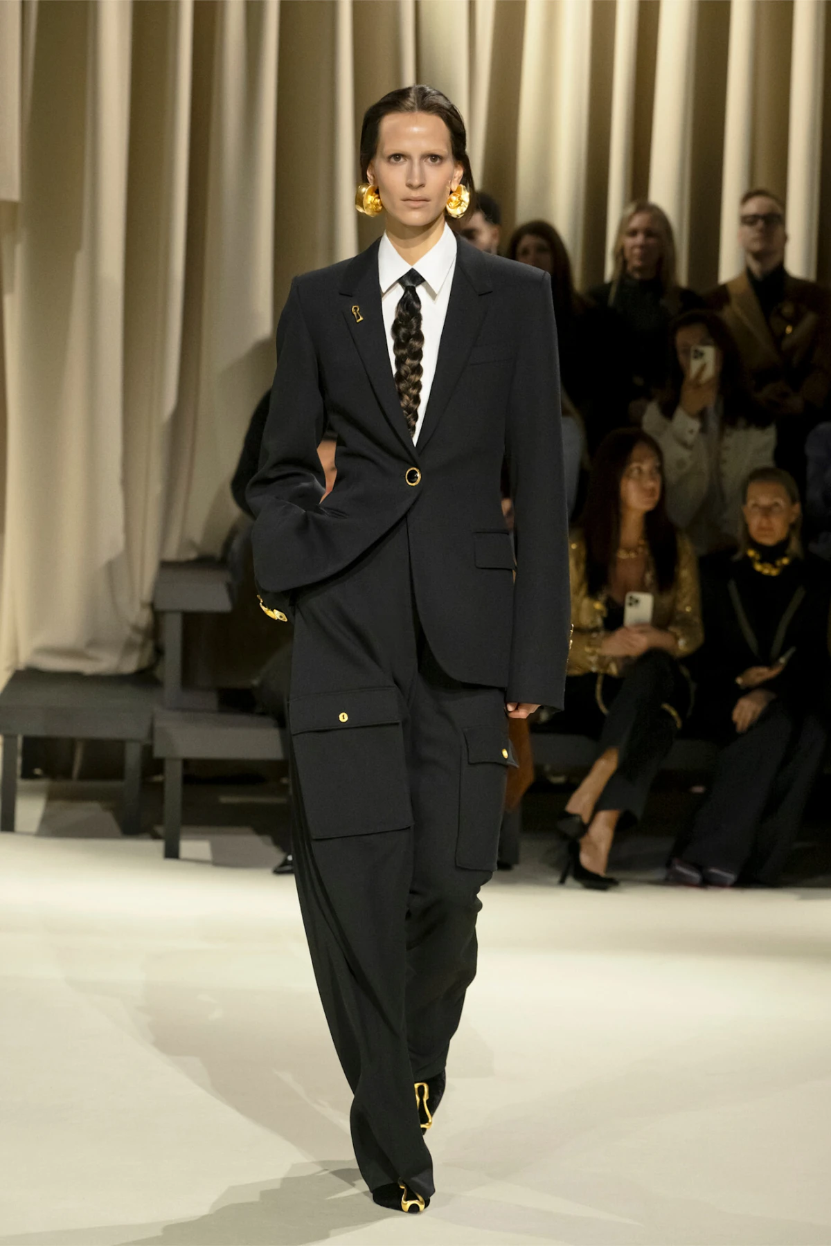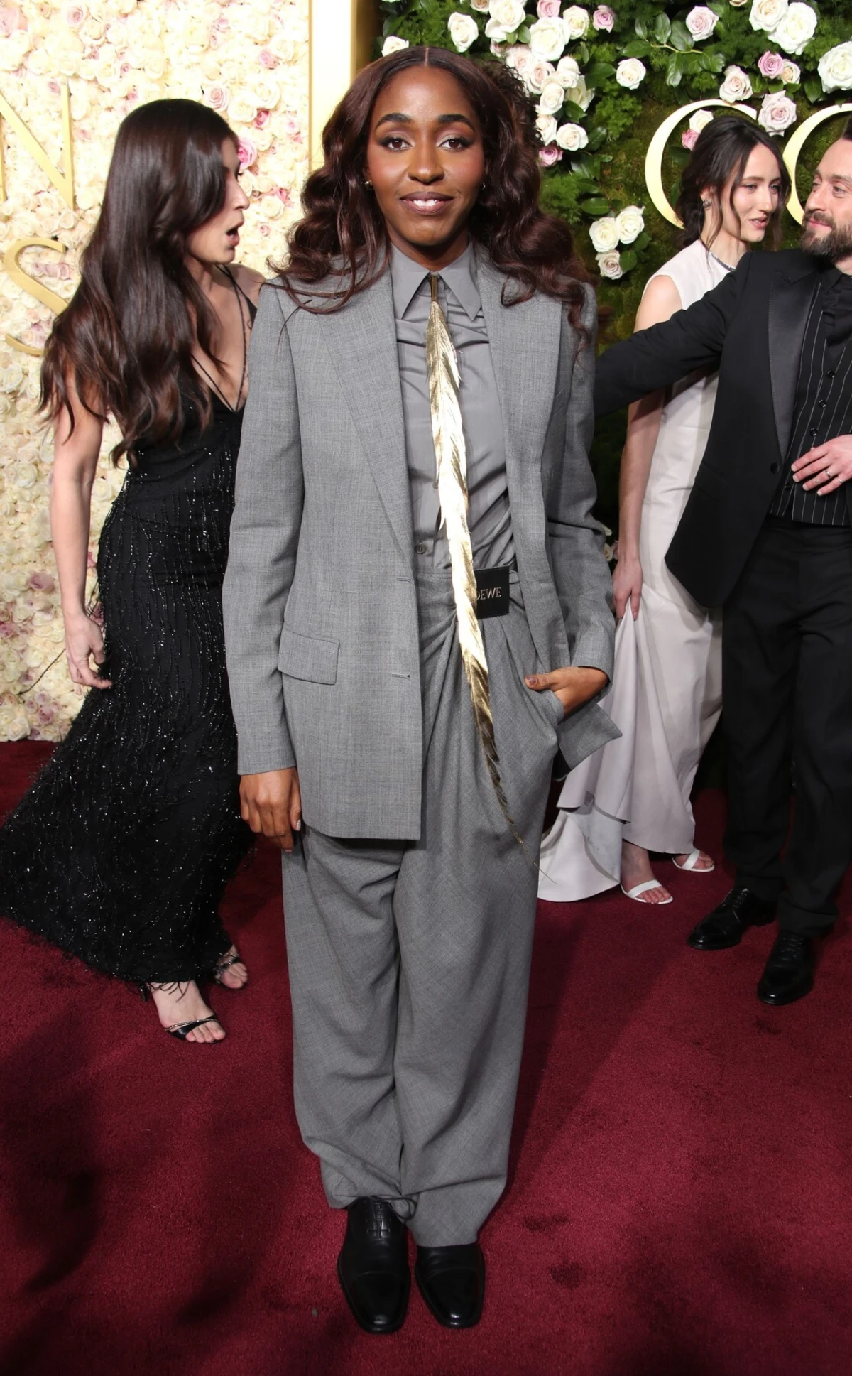 Loewe je unio dozu igre i teatralnosti svojim pernatim kravatama, a jednu takvu smo imali priliku vidjeti i na nedavnim dodjelama Zlatnih globusa. Zvijezda serije The Bear, Ayo Edebiri zablistala je u elegantnom i odvažnom odijelu kojim je odala počast legendarnom trenutku Julie Roberts na dodjeli Zlatnih globusa 1990. godine. Međutim, Edebiri je svojom verzijom unijela suvremeni štih s pomoću upečatljivog zlatnog metalnog pera koji je služio kao zamjena za kravatu. Ovaj smjeli detalj donio je dozu igre u strogi kroj odijela.