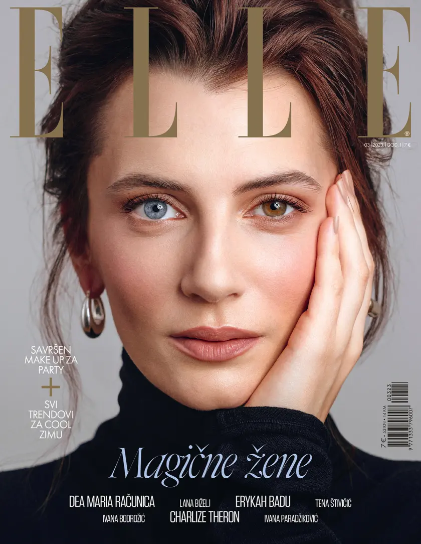 ELLE Hrvatska 03/2023 pod naslovom „Magične žene” slavi ženu koja je istovremeno nježna i snažna, krhka i nepokolebljiva, svakodnevna i potpuno jedinstvena. Cover fokusiran na lice i pogled naglašava ljepotu koja ne stane u klasične okvire – različite nijanse očiju, suptilan make up i prirodan izraz pretvaraju ovu naslovnicu u manifest različitosti.