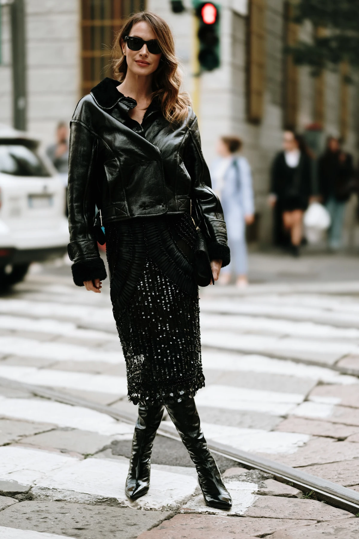 Ako ste ljubiteljica edgy stilova, kombinacija šljokičaste suknje i kožne jakne bit će vaš izbor ove sezone. Uz mini ili midi suknju dodajte crnu kožnu jaknu i jednostavan pamučni top. Zavrnite rukave na jakni, obucite crne najlonke i dodajte chunky gležnjače i crveni ruž koji će biti savršen završetak ove kombinacije.